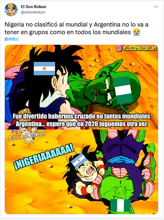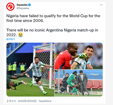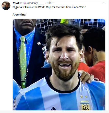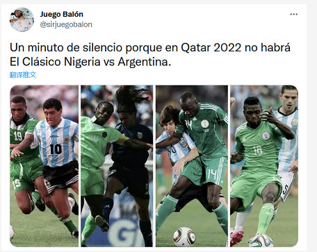 “2022 年不会有标志性的阿根廷VS尼日利亚了”、“尼日利亚:阿根廷别为我哭泣”……