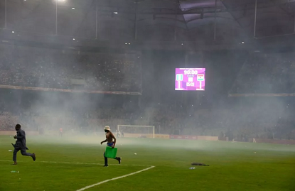 加纳球员逃离现场后,尼日利亚警方动用催泪瓦斯驱赶闹事球迷,才终于控制住骚乱情况。