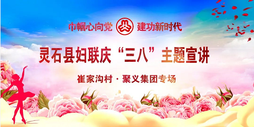 3月31日,为学习巾帼楷模,争当时代先锋,灵石县妇联“巾帼心向党 建功新时代”“庆三八”主题宣讲崔家沟村、山西聚义集团专场在集团文体楼举行,并在能源板块富源煤业、建材板块、农业板块设置了视频会议分会场。县妇联副主席史新莉、两渡镇妇联主席郭亚娜,崔家沟村妇女代表及部分妇女姐妹,集团妇联执委及各单位部门妇女代表参加了此次宣讲会。会议由聚义集团党委办主任、妇联主席何淑琴主持。