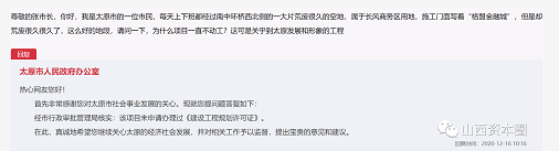 对于格盟金融城项目停工的原因,太原市政府办公室在2020年12月回复网友留言时曾表示,经市行政审批管理局核实该项目未申请办理过《建设工程规划许可证》,亦即意味着如此大规模的投资建设甫一施工便存在重大项目手续缺失。