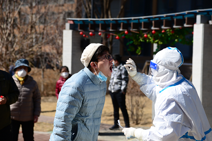 3月26日,在吉林市船营区大东街道一核酸检测采样点,工作人员为居民进行核酸检测采样。新华社记者 张楠 摄
