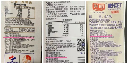 上海辟谣平台还收集了目前市场在售的数款光明乳业产品核查。其中,光明优倍鲜奶、光明致优鲜奶的生产商均显示为位于闵行区紫竹路的光明乳业华东中心工厂;光明优加纯牛奶的生产商是上海永安乳品有限公司等;光明如实风味发酵乳的生产商有武汉市的武汉光明乳品有限公司等。