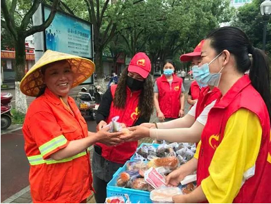 志愿者分发“爱心面包”。图片来源:浙江日报