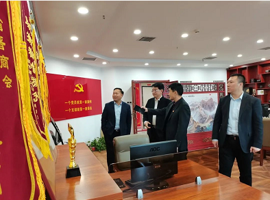 在郭启文会长陪同下,河南省豫南商会会长朱泽州,河南省豫宛商会执行秘书长王苗雨、商会法律顾问张淑霞一行参观了我会的党建文化长廊、党员活动室。河南省豫南商会朱泽州会长对我会把党组织建设作为商会建设的重中之重,响亮提出,一个党员就是一面旗帜,一个支部就是一座战斗堡垒,充分调动和发挥共产党员在商会组织和会员企业中的先锋模范作用,助推商会各项工作取得新的进展给予了积极的评价。朱会长说,通过参观河南省晋商会的党建文化长廊和党员活动室,给我耳目一新的感觉,使我对民营企业坚持以党建为引领,助推商会工作的开展有了新的认识。你们以商会党的建设为引领,以党建促会建的做法值得我们学习和借鉴。