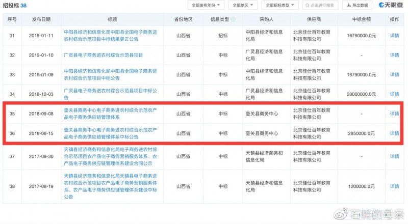 家属目前了解到的石峰近期参与过的项目: