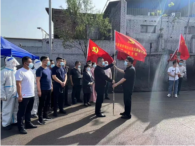 为全面加强党对疫情防控工作的领导,充分发挥基层党组织战斗堡垒作用和广大党员先锋模范作用,4月10日下午,辛置镇在惠民路疫情防控值守点举行疫情防控值守点临时党支部成立暨授旗仪式。辛置镇班子成员、各疫情防控值守点临时党支部书记及党员代表等共计20余人参加活动。