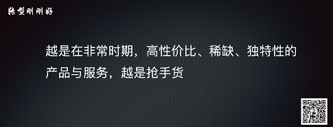 二是“老产品-新客户”组合。谁说非要保守治疗?越是在非常时期,高性价比、稀缺、独特性的产品与服务,越是抢手货。因此,在持续提升业务竞争力的基础上,拓展新客户、新市场仍然是重中之重,这一点做得好,不仅可以帮助企业渡过危机,还能上演防守反击;