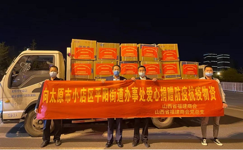 山西省福建商会(中国晋商俱乐部联合发起机构)和党总支闻“疫”而动,积极响应省工商联倡议,主动助力疫情防控,扛起责任,开展爱心捐款捐物活动,旨在有效缓解区域防疫物资压力,助基层一线防疫工作。