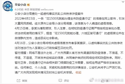 据@平安小店 4月15日,一条“花1500元就能办理全市防疫通行证”的信息在网上散布,引发大量网民质疑。