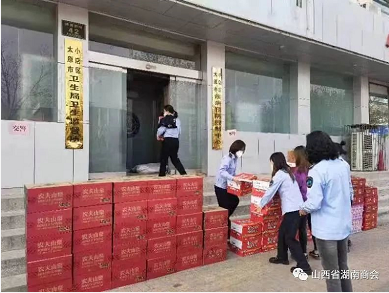 副会长单位山西湘味小镇餐饮有限公司为小店区卫生局捐赠了方便面桶装30箱、矿泉水30箱、火腿肠3箱、鸡蛋200个、苹果10箱、柑橘5箱等生活物资,助力小店区疫情防控。