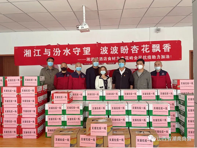 疫情无情,我们有爱。山西省湖南商会(中国晋商俱乐部联合发起机构)副会长单位山西湘味小镇餐饮有限公司、副会长单位湘波波酒店食材配送中心也相继积极响应,全力投身疫情防控工作,向连续奋战在抗疫一线的工作人员进行慰问。