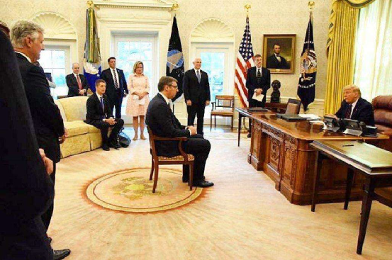 相比于中国对塞尔维亚的态度,美国还是一贯的野蛮与无理。2020年9月份,武契奇率领代表团访问美国,并在白宫和美国总统特朗普会面。但是,美方却在礼仪上羞辱武契奇:武契奇身高接近2米,但是美国却让他坐在一张勉强坐下的椅子上,直接面对坐在豪华办公桌前的特朗普,活活像一个被老师审问的小学生。这当时就引起了塞尔维亚人民的强烈不满,但是一个血淋淋的事实就是:弱国无外交,此次塞尔维亚有求于美国,不得不服软。