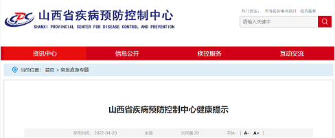 4月19日0-24时,31个省(自治区、直辖市)和新疆生产建设兵团新增本土确诊病例2753例(含616例无症状转确诊),本土无症状感染者17066例,共计新增感染19203例。4月13日至今,太原清徐等多个县区相继出现快递从业人员疫情,且感染者人数较多。当前我省“人、物、环境”同防压力陡增。为持续坚持“外防输入、内防反弹”总策略和“动态清零”总方针,维护三晋人民身体健康和正常社会秩序,山西省疾病预防控制中心健康提示如下。