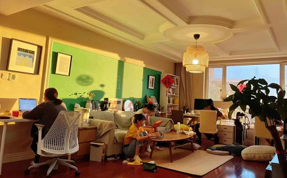 到公司后,大家会一起喝个咖啡,等阿姨来做饭,聊聊新闻或身边的事,然后再各自工作。偶尔心血来潮,晚上也会一起煮热红酒。工作没有思路的时候,可以去小区遛狗、去露台望天、去厨房煲汤……八点一到,完成工作的同事就准时下班了。