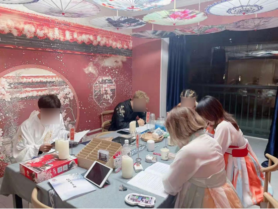 后来,我们的剧本杀店开在了居民楼里,主要面向附近的学生,有8个房间。租金一年8万多,我们直接付了一年的租金。装修上也投入了不少,我们需要根据场景重新装饰,壁纸、桌椅、装饰、人工费,算下来也有2万多。此外就是剧本支出,我们第一次在剧本上的投入就有2万多。