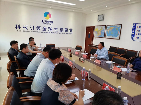 2022年4月20日,山西省人民政府驻天津办事处(环渤海招商局)党组书记、主任(局长)魏成生、山西省农业厅原党组成员、副厅长、省农机局局长左义河、山西省人民政府驻天津办事处招商部负责人董秀斌等一行八人来到山东七河生物科技股份有限公司参观考察食用菌种培育等合作项目。淄博市晋商商会(中国晋商俱乐部联合发起机构)李斌会长、康磊执行会长和吉明亮秘书长参加了考察活动的相关座谈。