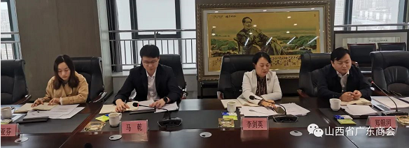 2022年4月21日下午,山西省工商联党组成员、副主席李剑英,山西省工商联经济部部长郑银河,经济部副部长马乾,经济部李亚芬一行来到亚佳大厦,与山西省广东商会(中国晋商俱乐部联合发起机构)及山西省浙江商会进行了座谈,落实省委、省政府工作部署,聚焦市场主体倍增、太忻一体化经济区建设等工作,就«山西省促进服务业领域困难行业恢复发展若干措施»、«山西省促进工业经济平稳增长行动方案»等政策措施进行了交流互动,并就商会围绕弘扬晋商精神、全方位推动高质量发展、市场主体倍增、清廉民企建设等相关工作进行推动。山西省广东商会党支部书记李楚忠,轮值会长庄绵升,常务副会长李毅,副会长苏丽平、刘志东,秘书长马飞跃及秘书处全体参加了本次座谈。