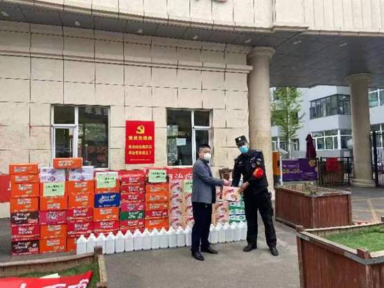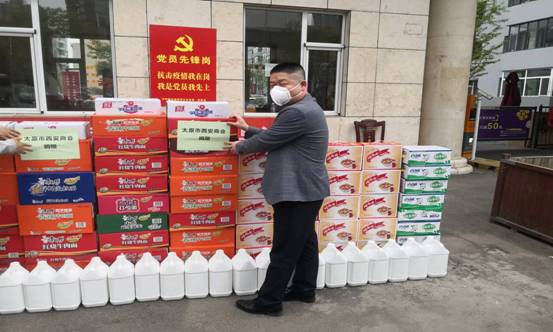 4月17日,在公司发起组织下,与太原市西安商会、宝鸡商会一道,先后对太原市小店区长凤画卷、小店区亲凤苑等小区保安公司进行慰问并捐赠了方便面、八宝粥、牛奶、矿泉水、测温枪、口罩、消毒液等部分生活用品和防护消杀用品。