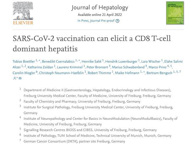 来自德国的最新临床研究发现,辉瑞/BioNTech联合开发的新冠mRNA疫苗(BNT162b2)可能引发一种罕见的以T细胞为介导的自身免疫性肝炎。