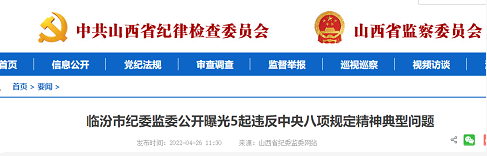 近日,临汾市纪委监委公开曝光近期查处的5起违反中央八项规定精神典型问题。具体如下。