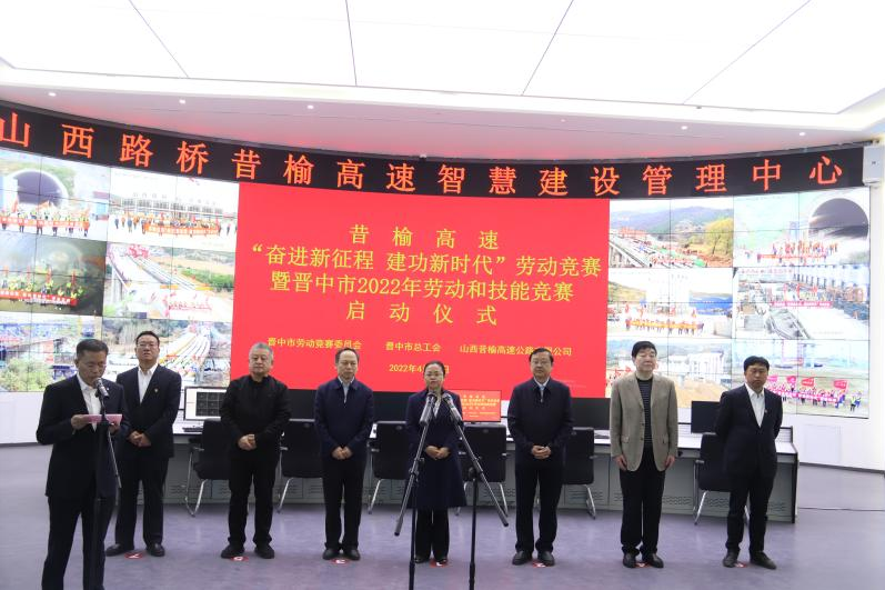 4月27日上午,由晋中市总工会、晋中市劳动竞赛委员会和山西昔榆高速公路有限公司联合举办的昔榆高速“奋进新征程、建功新时代”劳动竞赛暨晋中市2022年劳动和技能竞赛启动仪式在昔榆高速公路智慧建设指挥中心隆重举行。