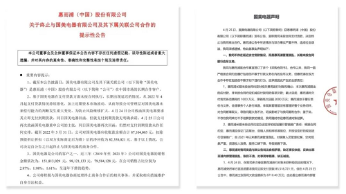 惠而浦与国美先后发布了公告。来源:公开资料