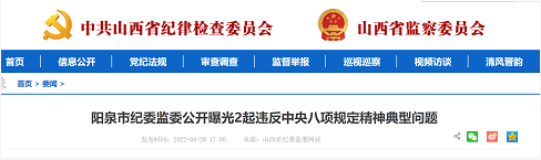阳泉市纪委监委公开曝光2起违反中央八项规定精神典型问题。具体如下。