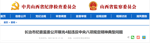 近日,长治市纪委监委公开曝光4起违反中央八项规定精神典型问题。具体如下。