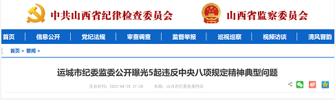 运城市纪委监委公开曝光5起违反中央八项规定精神典型问题。具体如下。