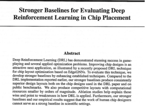 没过多久,Chatterjee 等人就把驳斥论文写出来了,标题为 Stronger baselines for evaluating Deep Reincorcement Learning in Chip Placement(点击文末“阅读原文”按钮查看)。