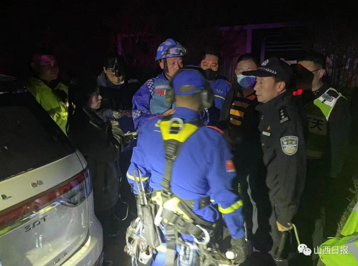 ▲太原警方和蓝天救援队员在现场开展搜救工作