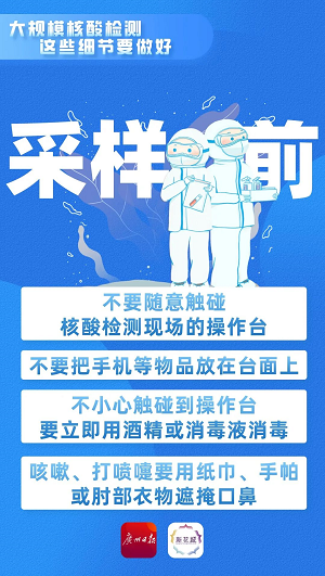 在采集核酸时,不要用手触碰采样桌面,也不要把手机、身份证等个人物品放在桌面上。
