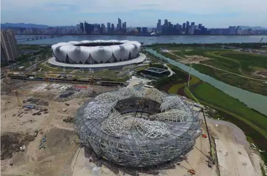 “此前,因为体育设施硬件不够,运动员素质相对较弱。浙江省没有举办过一线全国运动会,我们2005年申办全运会以失败告终。” 时任杭州奥体博览中心滨江建设指挥部总工程师王靖回忆道。提高杭州市人民生活品质,提升体育氛围迫在眉睫。在2008年杭州市一号文件中,时任杭州市委书记王国平书记提出,要在杭州钱江新城对岸的滨江和萧山七甲河交界处建设一个奥体博览中心,目标是国内领先,国际一流。2009年,七甲闸村进入全面的拆迁阶段,同年,杭州奥体中心体育场奠基开工。