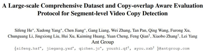该研究提出了目前最大规模(超过现有其他数据集 2 个数量级规模)的视频侵权定位数据集VCSL,并提出全新的视频片段拷贝检测的评价指标。相关研究入选CVPR 2022。