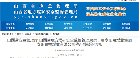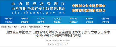 5月9日,山西省应急管理厅、山西省地方煤矿安监局联合发布“关于责令事故煤业公司停产整顿的通知”。