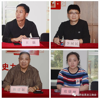 山西省黑龙江商会党支部书记、会长、中能远大科技集团(山西)有限公司董事长张士维,执行会长、本月轮值会长、港中旅国际(山西)旅行社有限公司总经理姚利国,执行会长、山西空界酒业有限公司董事长张万宇,常务副会长、山西浩品科技有限公司总经理齐东山,副会长、山西善源佳瑞建筑劳务有限公司总经理周勇,副会长、山西宏驰商贸有限公司总经理王玉秀,副会长兼副秘书长、山西海裕科技有限公司总经理张娜,会员李树民、王强、席康丽,秘书长陈建新等参加本次会议。