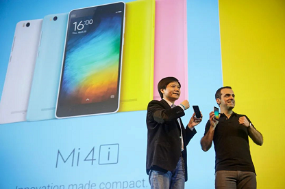2015年4月23日,小米在印度举办发布会,雷军和副总裁雨果·巴拉出席发布会。来源:视觉中国