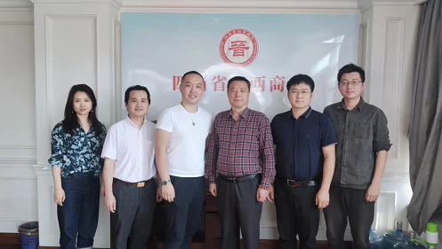 四川省山西商会(中国晋商俱乐部联合发起机构)常务副会长成都卡狗汽车服务有限公司总经理王小龙与副会长中汇国际保险经纪股份有限公司四川分公司总经理杨军等在商会会议室座谈