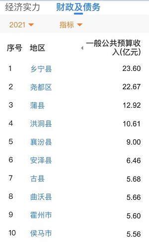 2021年尧都区完成财政收入22.67亿排在全市第二位,同比增长20.6%,尧都区工业基础以煤电、煤化工、钢铁、铸造、建材、医药、电子等产业为主,是山西省重要的煤化工生产基地,能源型经济的高位运行很好的支撑了尧都区财政收入的高增长。