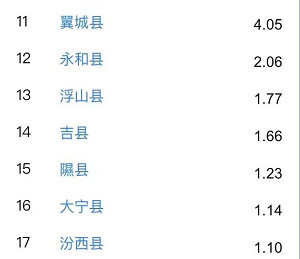 2021年蒲县和洪洞县分别完成财政收入12.92亿和10.61亿排在全市第三第四位,襄汾县、安泽县、古县等地区在2021年的财政收入均在10亿元以下规模,其中汾西县处在全市2021年财政收入垫底位置,仅为1.1亿。整体来看2021年临汾市实现了财政收入的稳定较快增长,财政收入很好地促进了地区基础设施等各方面建设,有力的带动了经济的稳定增长。