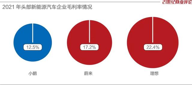 原材料涨价,相较竞争对手,小鹏汽车的压力更大。2021年财报显示,小鹏毛利率为12.5%,低于蔚来、理想的17.2%和22.4%。老板何小鹏近期还表示,公司中长期目标,是将毛利率提升到25%以上。