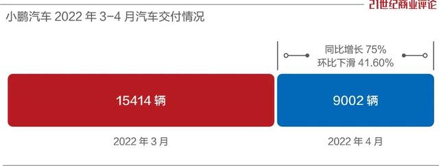 今年4月,小鹏交付了9002台,同比增长75%。但相较3月的15414台,环比下滑41.6%。