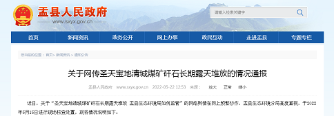 近日,关于“圣天宝地清城煤矿矸石长期露天堆放 盂县生态环境局如何监管”的网络舆情在网上频繁炒作,盂县生态环境分局高度重视,于2022年5月15日进行现场核查处置,现将情况说明如下: