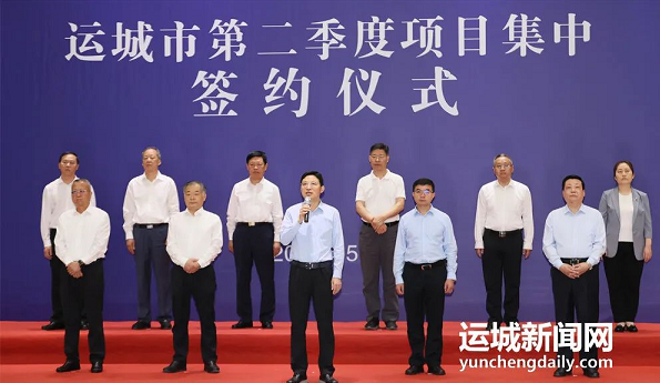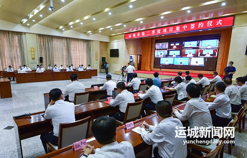 以“云”为媒,以“屏”为介。5月24日,运城市举行第二季度项目集中“云签约”仪式,签约招商引资项目28个,总投资325.8亿元,为全市经济实现“双过半”“全年红”奠定了坚实基础。市长储祥好见证签约并讲话。市领导王立刚、邓雁平、张润喜、陈杰、王志峰、乔登州、曹晓亮、董旭光、赵晔、杨彦康出席。副市长李哲主持。