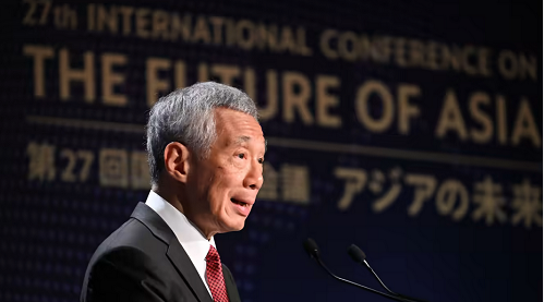 5月26日,李显龙在东京“亚洲的未来”交流会上发表讲话(日经新闻图)