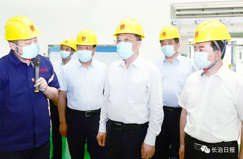 杨勤荣带队实地调研督导县区重点项目建设推进情况。图为在山西晋控装备创力智能制造建设项目现场听取工作进展情况。长治日报记者 梁栋 摄