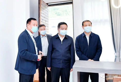 陈耳东带队实地调研督导县区重点项目建设推进情况。图为在平顺半山窑洞民宿文化园察看项目建设情况。长治日报记者 徐翔 摄