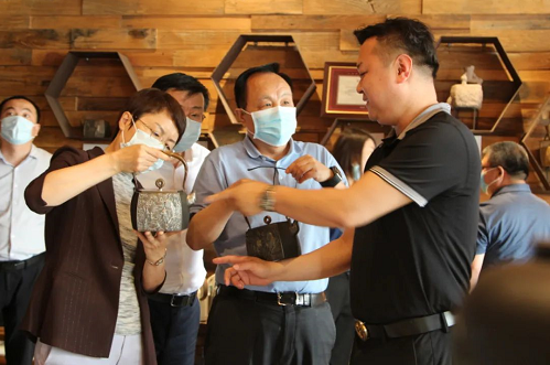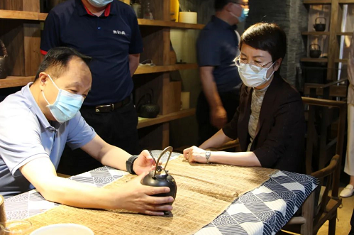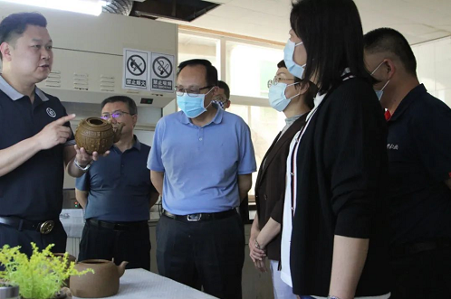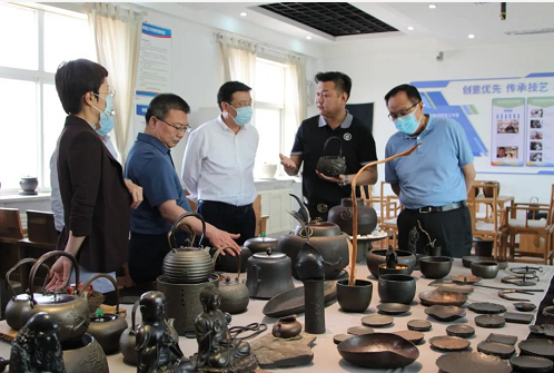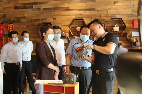 马彪副厅长同邓副市长一行在晋韵堂收藏款生肖铁壶前不禁驻足欣赏,赞叹匠人的手艺。