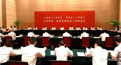 6月2日,太原、忻州两市人大常委会太忻经济一体化发展协作工作座谈会在并举行。省委常委、太原市委书记韦韬,省人大常委会副主任王纯,忻州市委书记朱晓东出席并讲话。太原市委副书记、市长张新伟,忻州市委副书记、市长李建国出席。省太忻经济一体化发展促进中心主任张翔,太原市人大常委会主任魏民,忻州市人大常委会主任王珍发言。太忻经济一体化发展太原区、忻州区运营中心主要负责同志介绍情况。两市人大常委会负责同志参加。