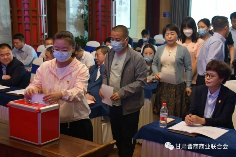 大会在雄壮的国歌声中拉开帷幕。兰州市总商会党委王璀同志宣读了中共兰州市总商会委员会《关于甘肃晋商商业联合会委员会换届批复》文件。商会党委书记闫志勇作党委工作报告。讨论并通过了《中共甘肃晋商商业联合会委员会换届选举办法(草案)》。大会严格按照《中国共产党章程》和《中国共产党基层组织选举工作条例》的程序,圆满完成了选举工作。王虹(女)、白瑞冰、闫志勇、陈闻、高平生(按姓氏笔划为序)五名同志当选为新一届党委委员。闫志勇同志当选为新一届党委书记。
